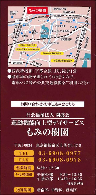 2017年8月1日より新規開設しました( もみの樹園内 1 階 ) 「新宿区 西落合」の皆様、新規入所募集中です。